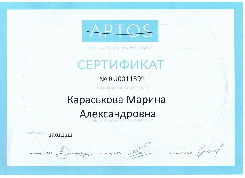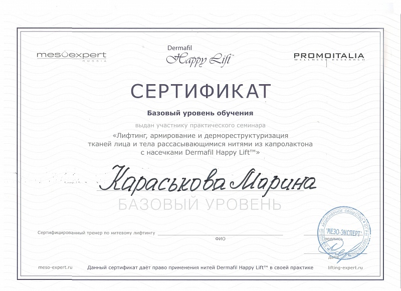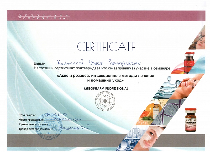 Сертификат специалиста по косметологии от 12.05.2018